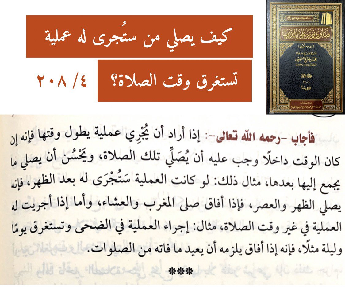 كيف يصلي من ستُجرى له عملية تستغرق وقت الصلاة؟