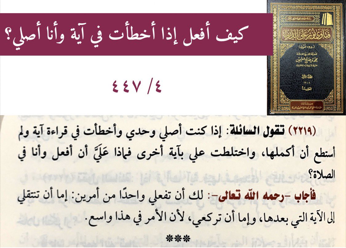 كيف أفعل إذا أخطأت في آية وأنا أصلي؟