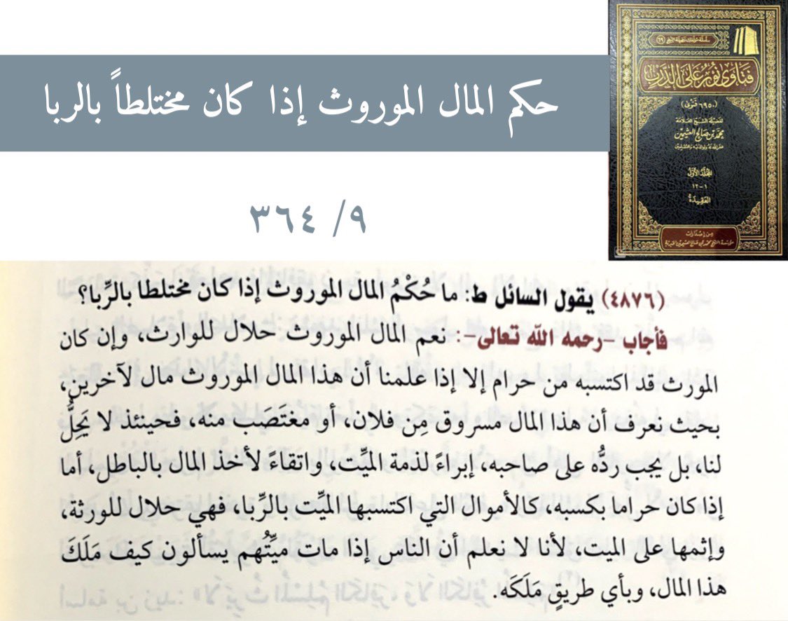 حكم المال الموروث إذا كان مختلطاً بالربا.