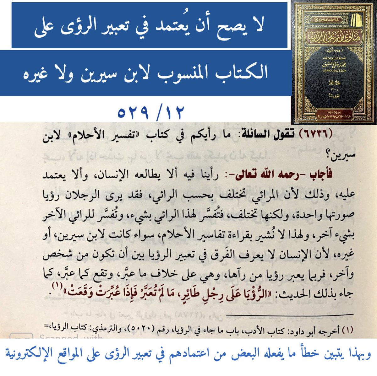 لا يصح أن يُعتمد في تعبير الرؤى على الكتاب المنسوب لابن سيرين ولا غيره.
