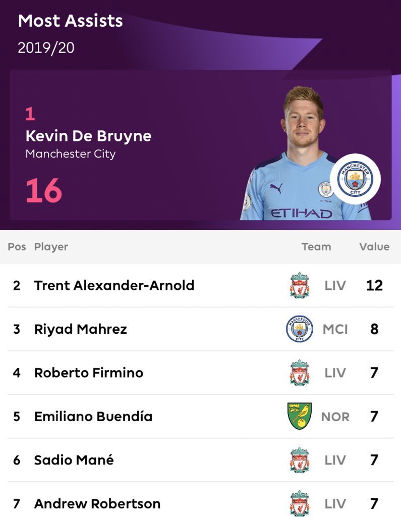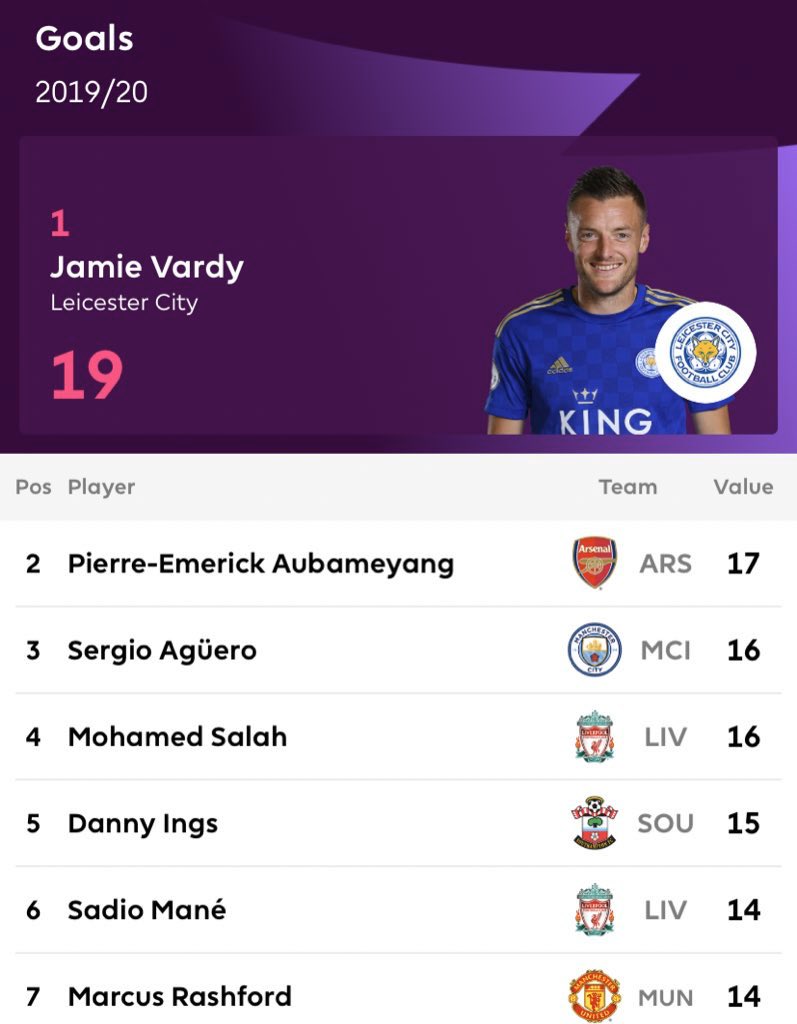 اكثر اللاعبين استخلاصا للاهداف المحققه في البريميرليغ موسم 2019-2020 /