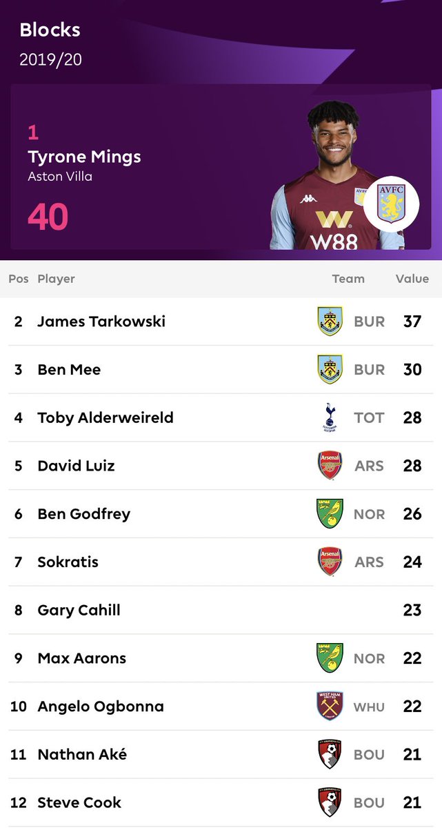 اكثر اللاعبين اعتراضا للكرة في البريميرليغ موسم 2019-2020 حتى الان /