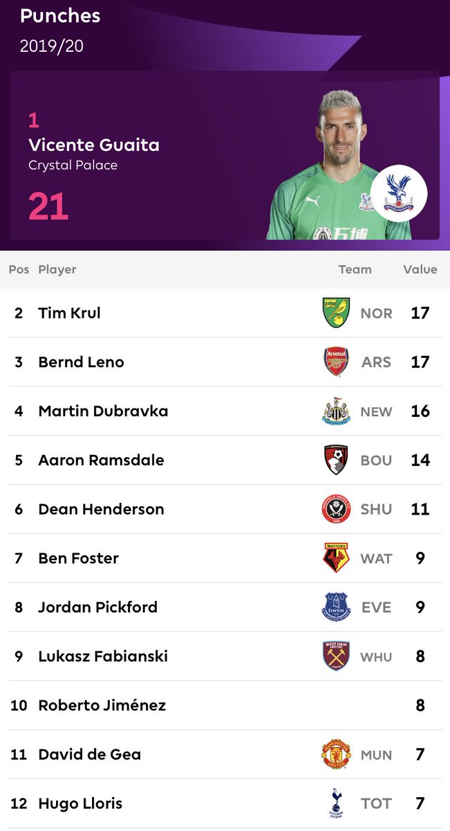 اكثر الحراس بونشينق في البريميرليغ موسم 2019-2002 حتى الان /
