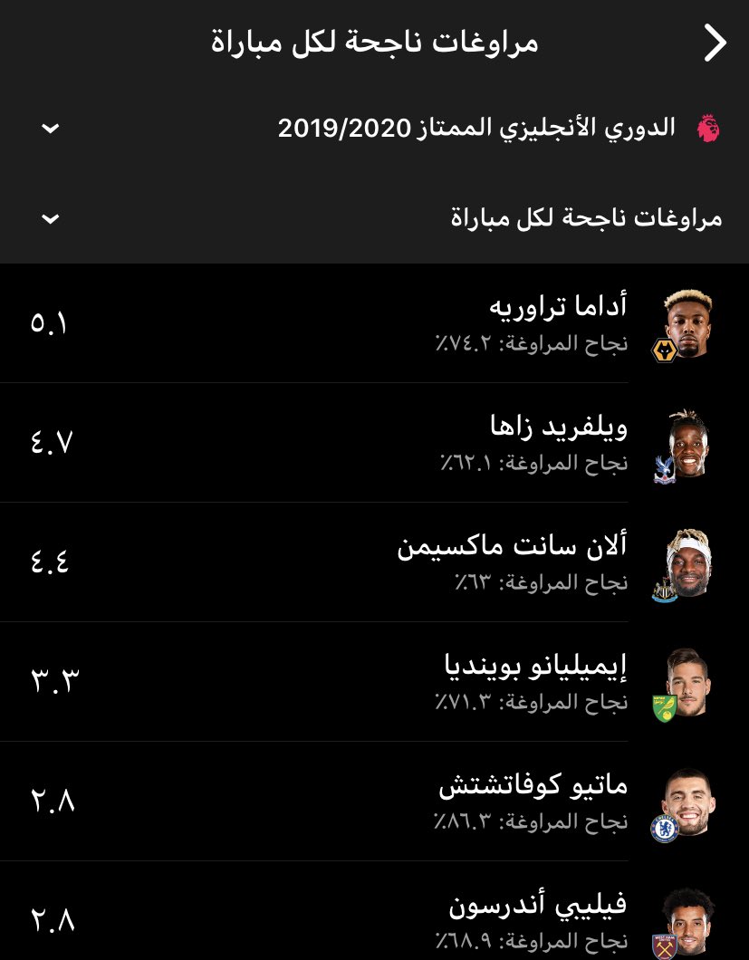 اكثر اللاعبين مراوغة للكرة في البريميرليغ موسم 2019-2020 حتى الان /