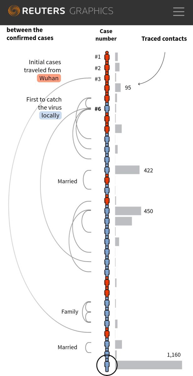 تم تتبع الحالات المحدودة التي جاءت من ووهان، وحين وصلوا للمرأة ٣١ وجدوا أنها توجهت إلى كنيسة أثناء مرضها فانفجر العدد بالرغم من توصية الأطباء لها بالفحص
