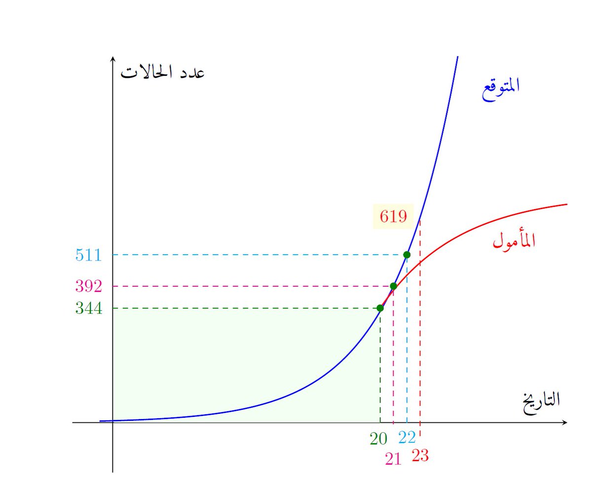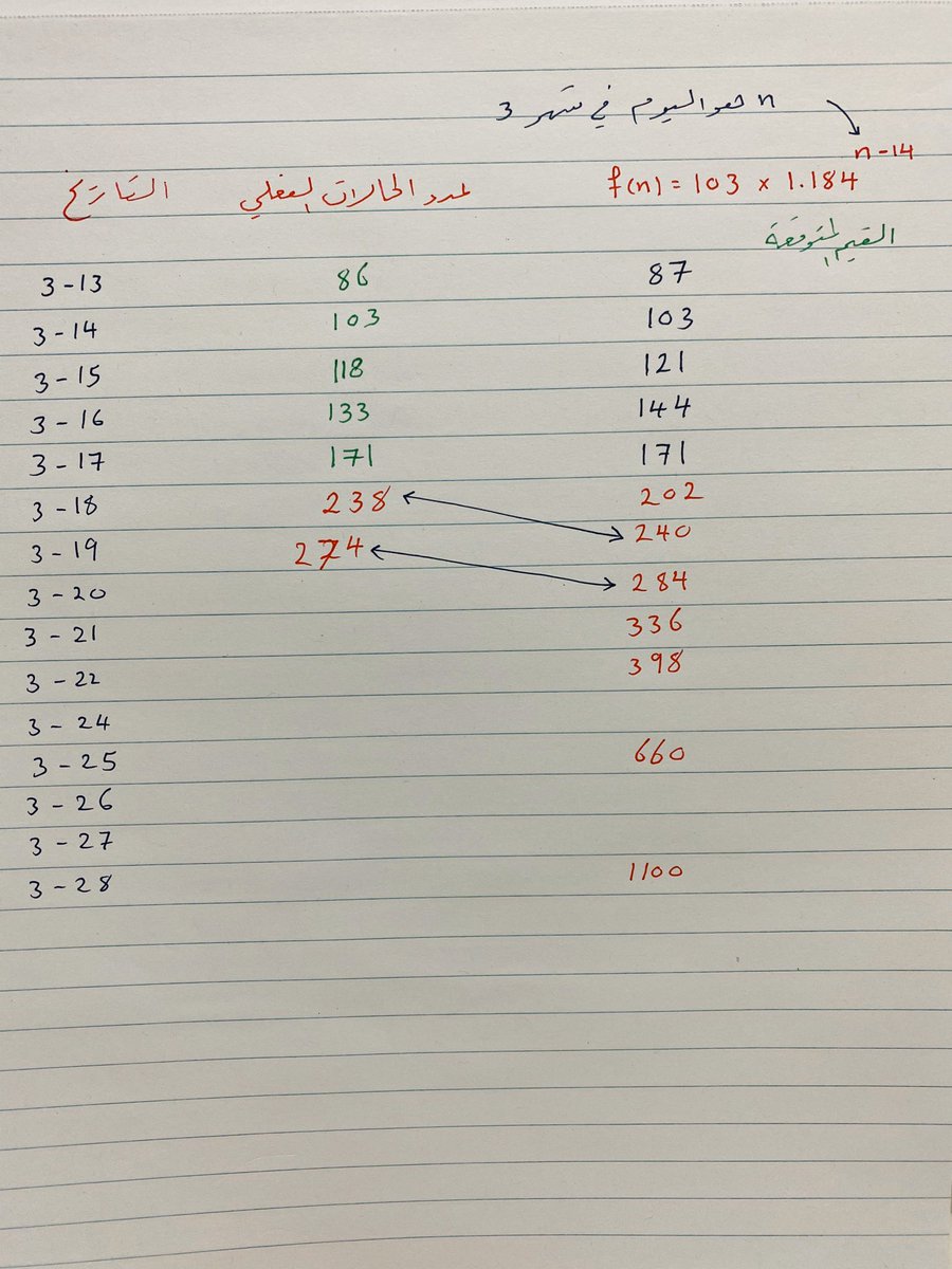 وتوصلت إلى دالة تتفق إلى حد ما مع عدد الحالات حتى اليوم.