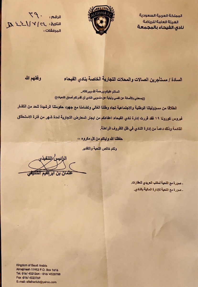 نادي الفيحاء يعفي المستأجرين لمدة شهر في ظل الظروف الراهنة، #نسندكم