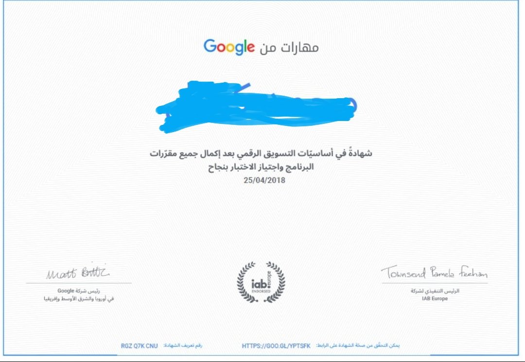 تقدم العديد من الدورات التدريبية باللغة العربية ، وتقدم دبلوم في التسويق بشهادة معتمدة من شركة قوقل مجانًا.