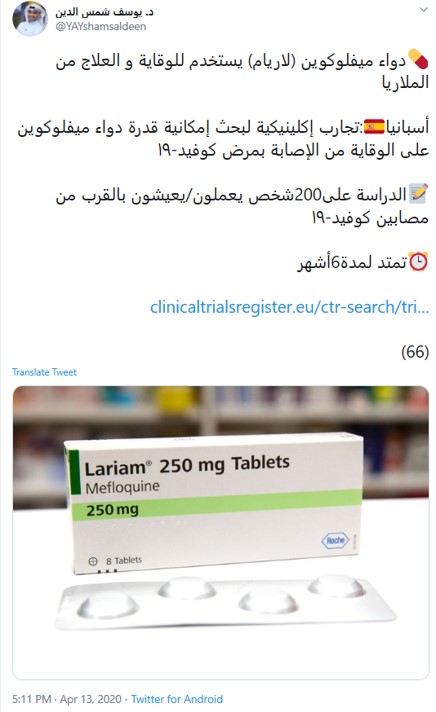 🔴هناك توجّه لمعرفة إذا كانت أدوية الملاريا قادرة على الوقاية من كوفيد-19