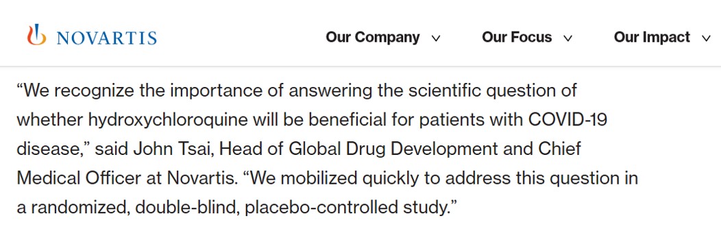 شركة نوفارتيس الدوائية @Novartis تتلقى الموافقة من هيئة الغذاء والدواء لتجربة دواء هايدروكسيكلوروكوين (مرحلة3) على440مصاب بكوفيد-19