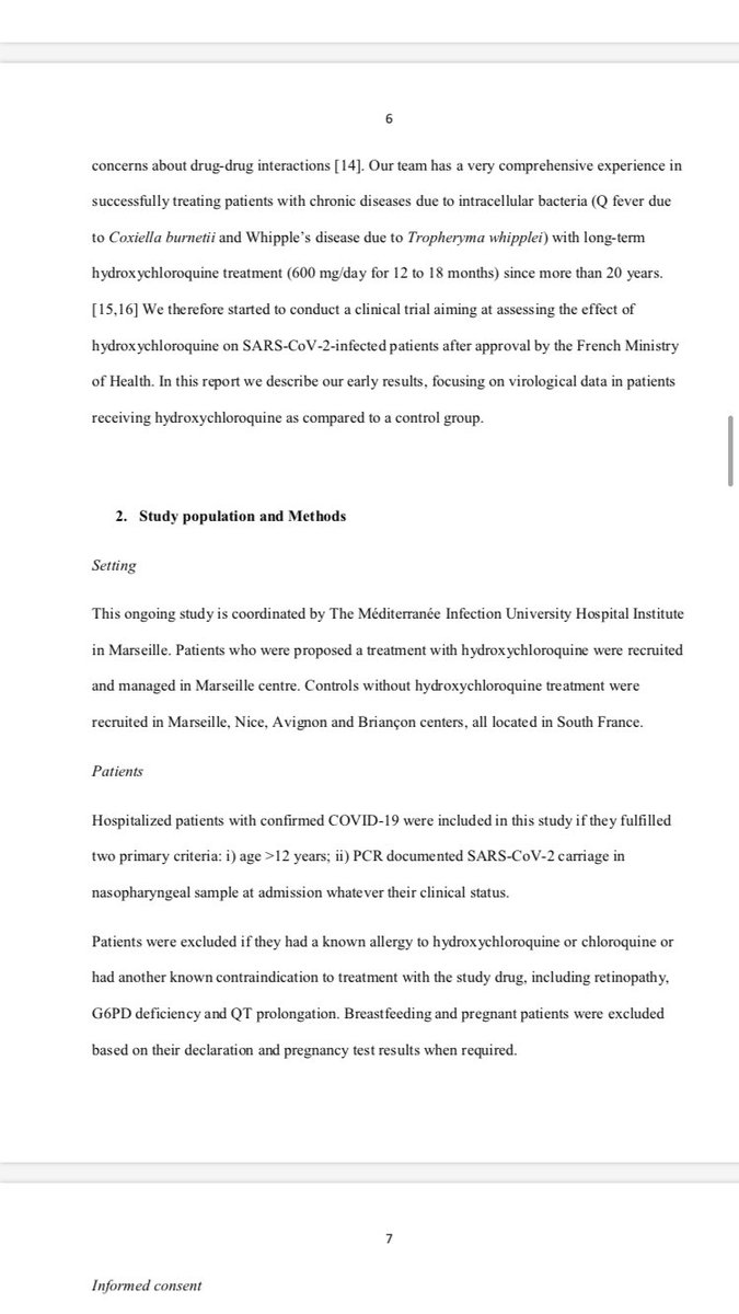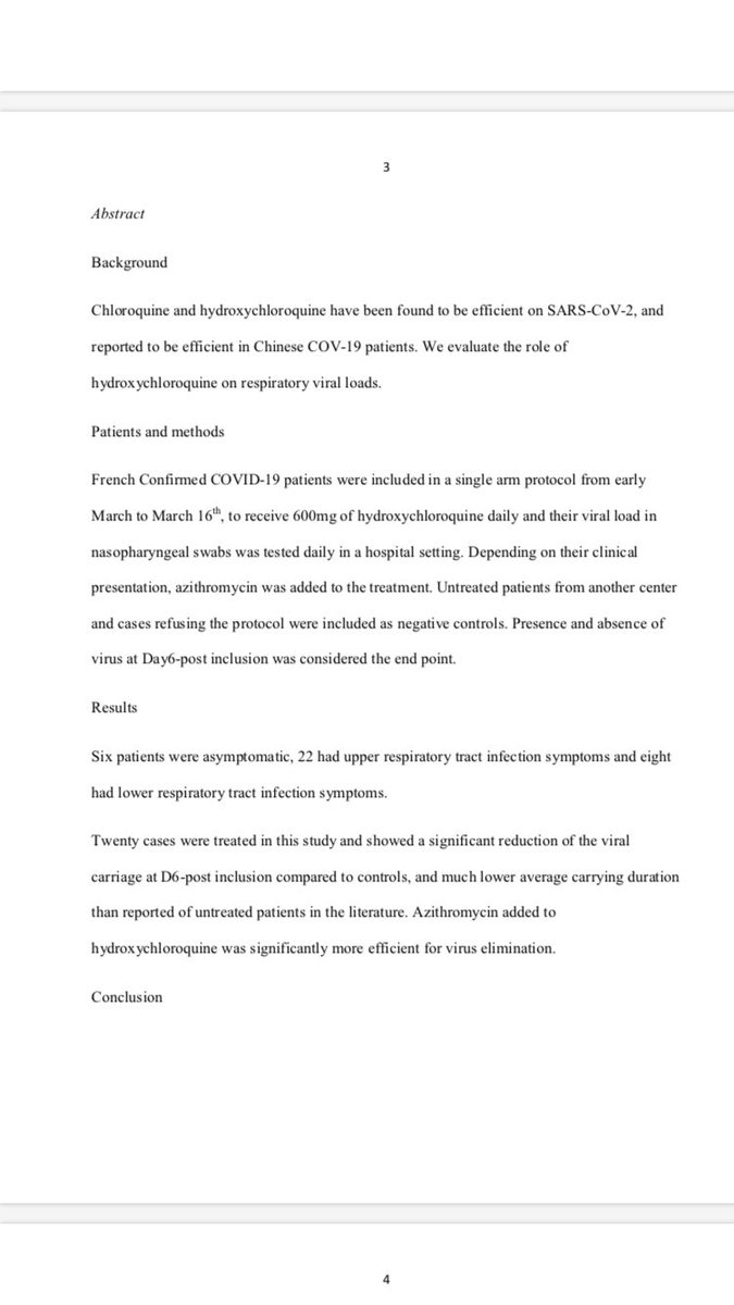الدراسة التي اجريت على ٤٠ مريض في فرنسا مصابين ب #كورونا و استخدم فيها كلوروكوين (علاج الملاريا)