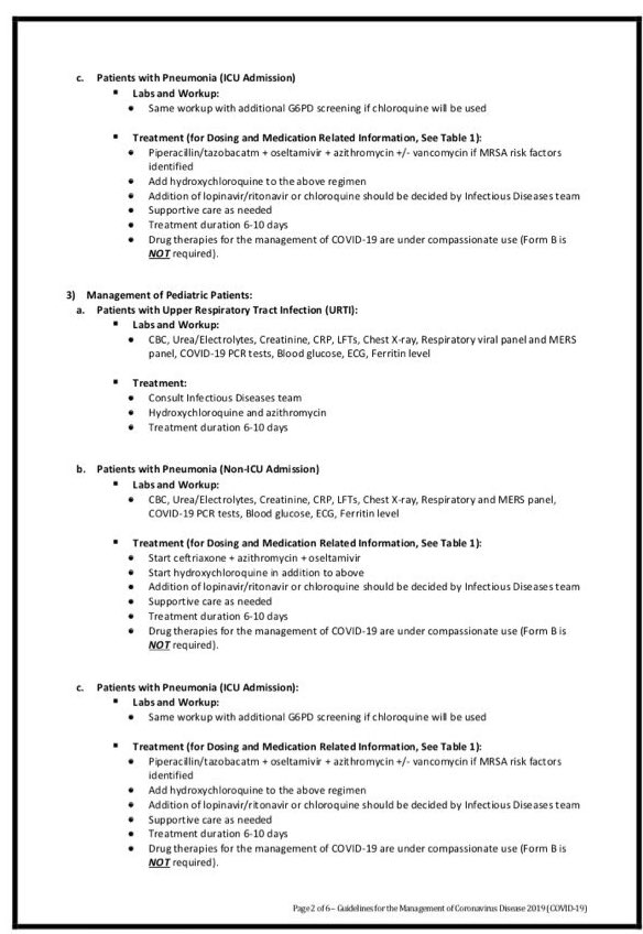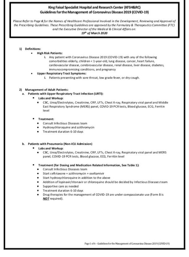 البرتوكول ليس للاستخدام الشخصي بل للمختصين في المستشفيات ولا تحاول اقتناء اي من الأدوية والأدوية لا تغني عن العناية الصحية والعزل وهي الأساس في اغلب الحالات