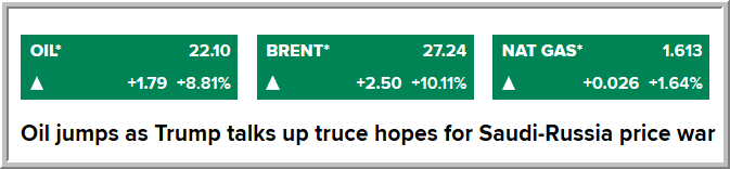 هذا سعر النفط اثناء جلسة التداول ليوم الأربعاء 2020/3/18 اثناء تغطيتنا للأحداث اليومية، وسعر مزيج نايمكس WTI قد وصل الى 20.24$ للبرميل وهو الأدنى منذ 18 عاماً ..