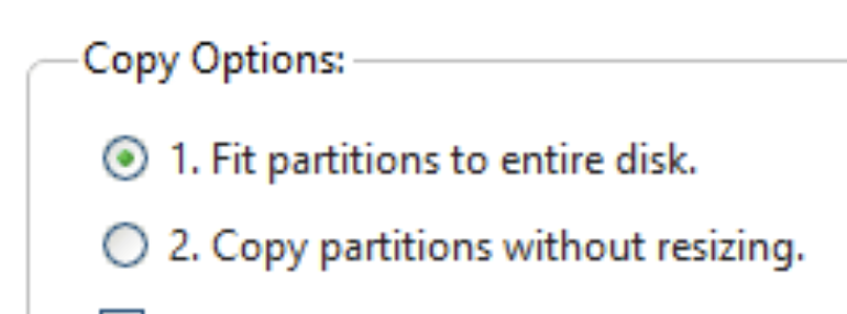 ٢- ينسخ جميع اقسام القرص الصلب بما فيها قسم بداية الاقلاع وقسم نظام التشغيل واقسام البيانات ان وجدت