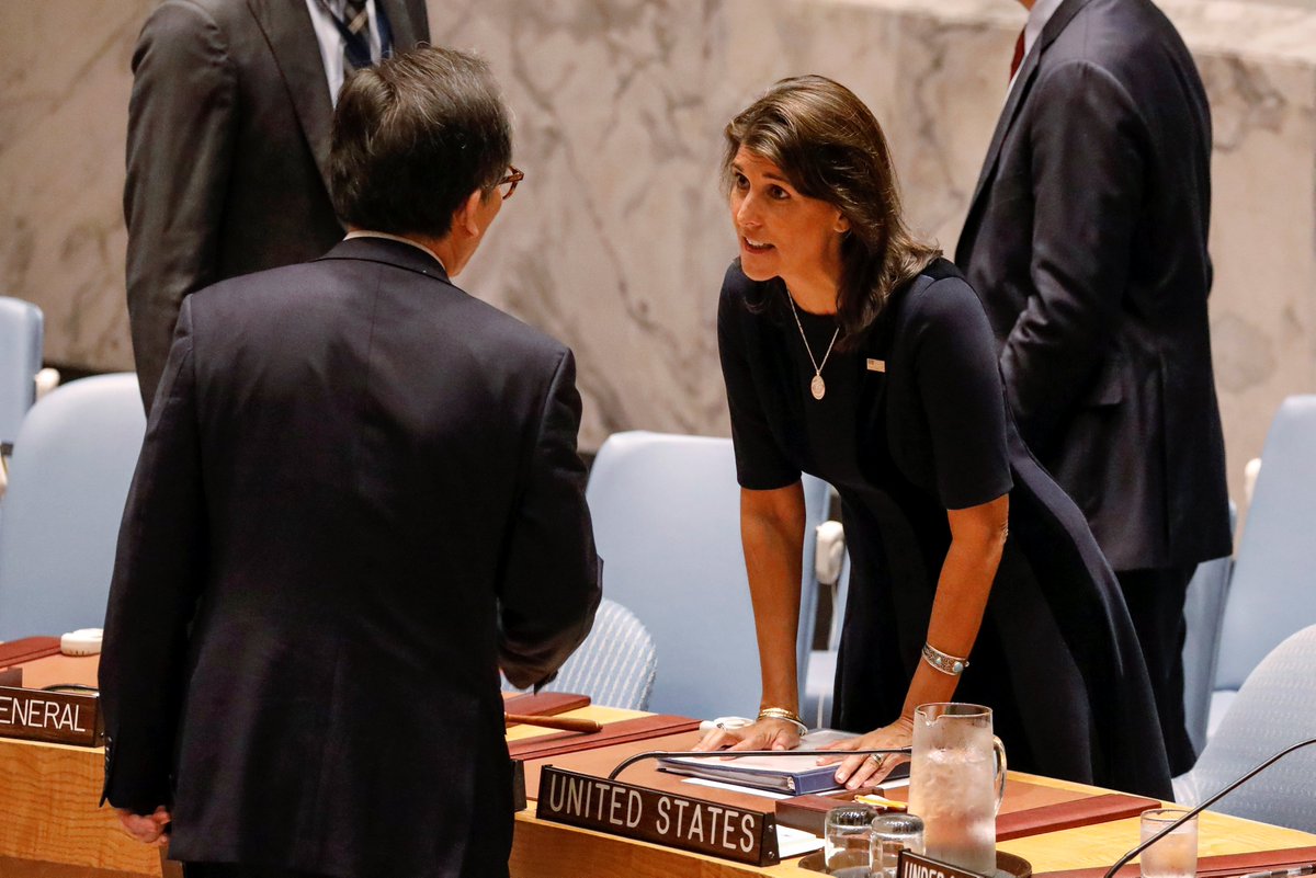اعتلت هيلي منبر الأمم المتحدة لتسوق أفكار ترامب، واستخدمت لغة التهديد بسحب دعمها للأمم المتحدة، وناصرت إسرائيل بكل الطرق .. ذكر بعض الكتاب العرب في وصف نيكي هيلي ومواقفها في الأمم المتحدة : "ربما هي أكثر سيدة على وجه الأرض تكره قضية الشعب الفلسطيني" ..