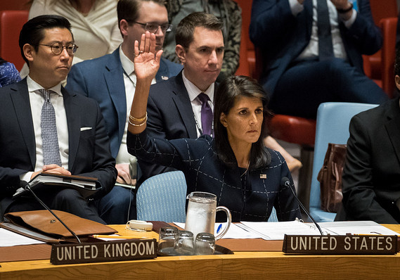 هددت هيلي مندوبين الدول في الجمعية العامة للأمم المتحدة بألا يصوتوا على قراراً بشأن سحب أمريكا إعترافها بالقدس عاصمة لإسرائيل، وقالت لهم بأن ترامب سيعتبر اعتراضهم على القرار بشأن القدس، تصويتاً ضده شخصياً .. لكن 128 دولة صوتوا ضد قرار ترامب ..