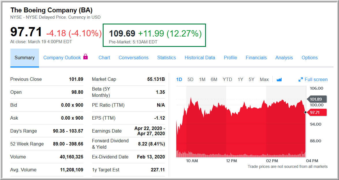 السهم عند هذه الأسعار (100$ تقريباً) هو فرصة حقيقية للشركة نفسها لإعادة شراء أسهمها ، كما انه يمثل فرصة لا تعوض للصناديق السيادية ، وفرصة أيضا للفدرالي الأمريكي لشراء اسهم الطيران والفنادق وبوينج ..