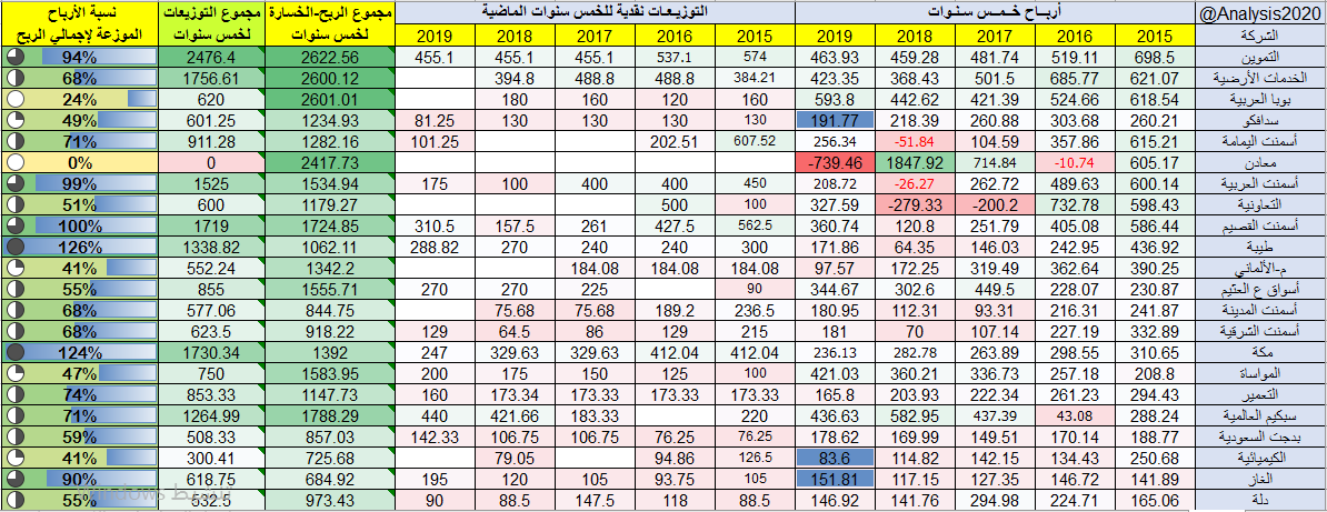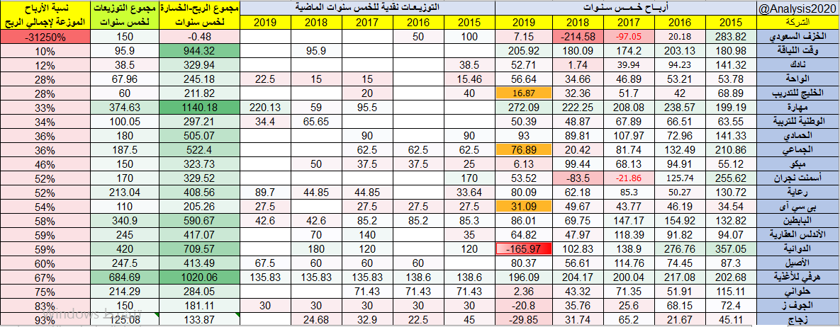 تم استبعاد الشركات الي تحقق خسائر لعامين متتاليين