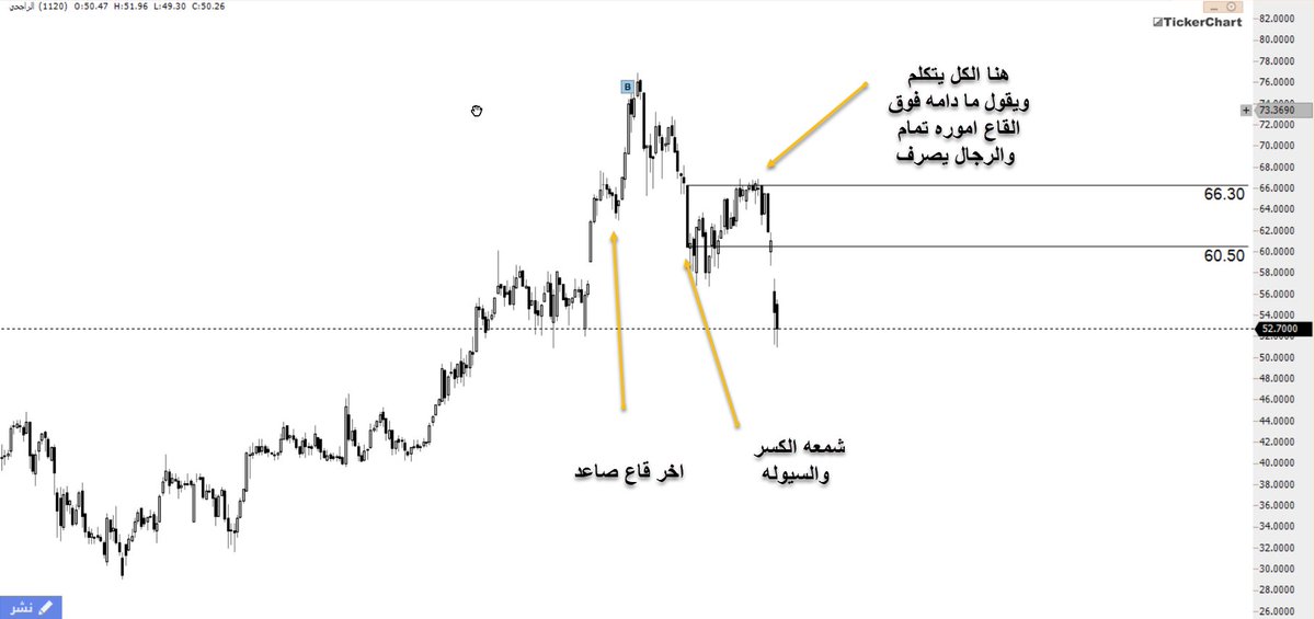 *الشمعه المقصوده تعتبر شمعه السيوله لانها كسرت او اخترقت مناطق قويه ما يفعلها الا مظارب او الصندوق نفسه للسهم او شركه