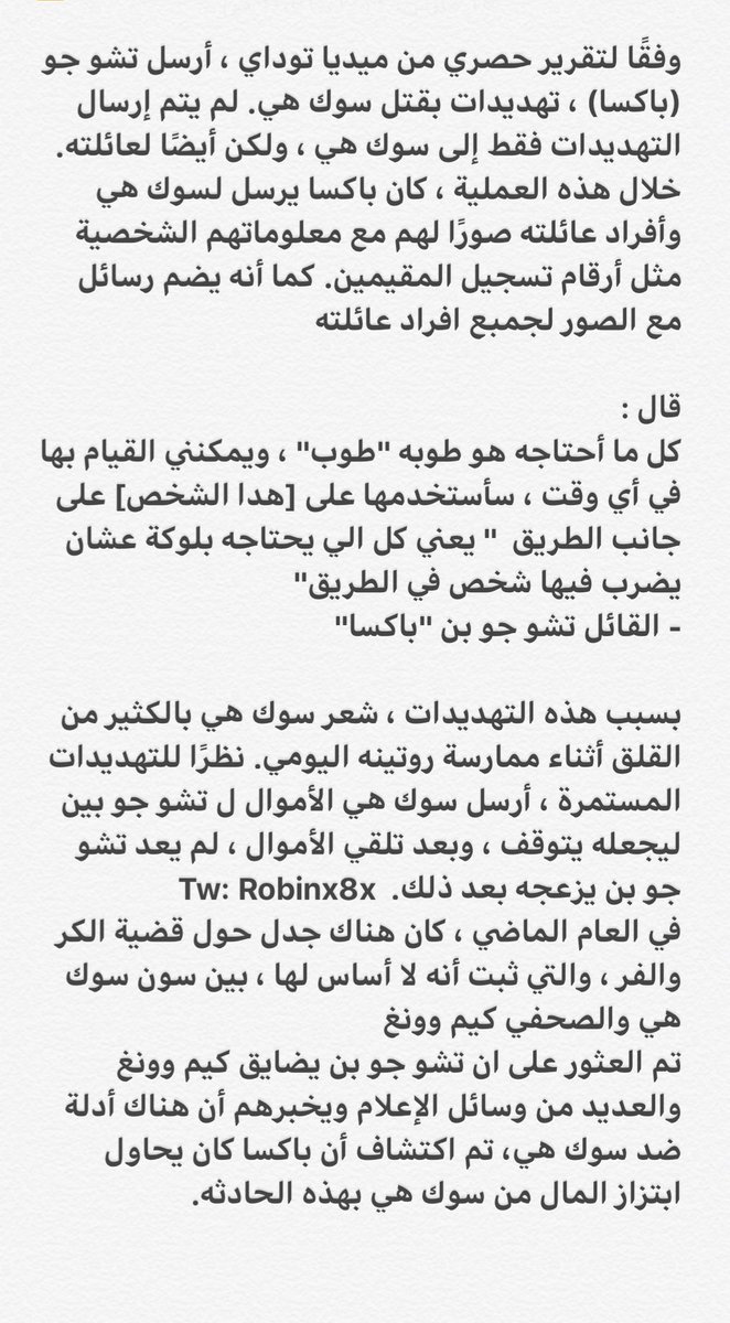 وقالت الشرطة الكورية: " سنتتبع باكسا والجناة الآخرين قدر الإمكان للتأكد من أننا نجمع كل المعلومات اللازمة لتحقيق العدالة في القضية"