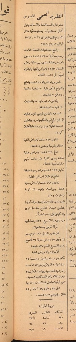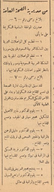 تحت هالتغريدة -بتسلسل- سأضع معلومات تاريخية موثقة بصور وقصاصات عن أمراض وأوبئة شائعة سابقة دولية ومحلية: طاعون، كوليرا، جدري، ملاريا، تيفوئيد، حمى، حصبة، باختلاف مسمياتها وأنواعها، من باب التثيقف والمعرفة، الاجراءات متشابهة تعيد نفسها!