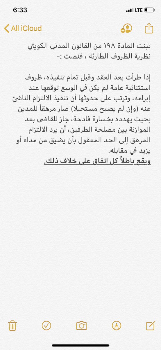 انت موظف ورب عملك وقع معك اتفاق يسمح لنفسه بتخفيض أجرك في حالات معينة ، وبعد جائحة #كورونا وبسبب تضرر تجارته قام بتخفيض أجرك استناداً الى ذلك الاتفاق.