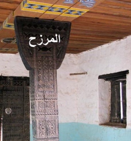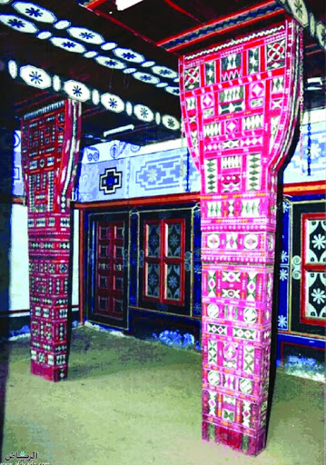 الأعمدة الخشبية تستخدم لحمل الأسقف بجانب الحوائط في حال وجود فراغ كبير مثل المجالس والمساجد وكذلك في بعض الشرفات والمظلات.