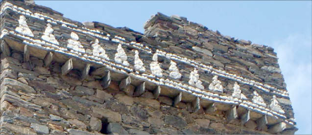 محيط المباني يتم تزيينه من خارجيا من الأعلى بحليات من الحجر البارز.