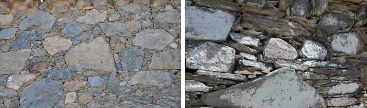 هناك تقنيات مختلفة تستخدم لرص المداميك بحسب احجام الحجارة وألوانها في بعض الأحيان.
