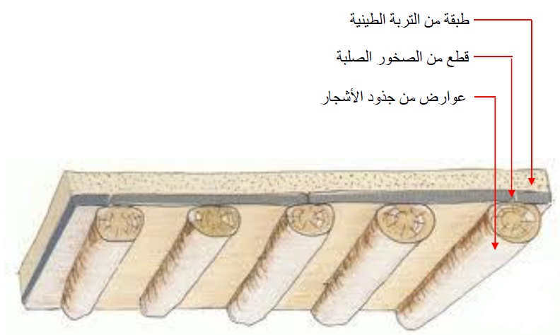 الأسقف تم تشييدها من جذوع شجر العرعر وتم تغطيتها طبقة من الحجارة تسمى الصلى وتغطى بعدها بالطين لسد الفراغات والشقوق بينها.