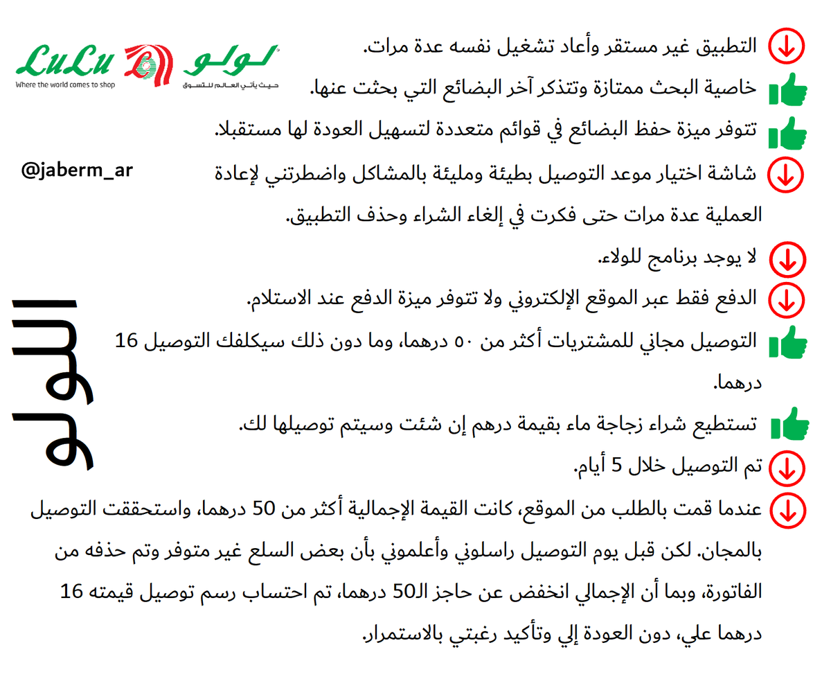 لولو هايبرماركت أيضا من المتاجر ذات المصداقية العالية والسمعة الجيدة، لكن للأسف التطبيق يفتقر للإستقرار والخدمات الإلكترونية تفتقر لميزة الدفع عند الاستلام المتوفرة لدى كل المنافسين تقريبا.