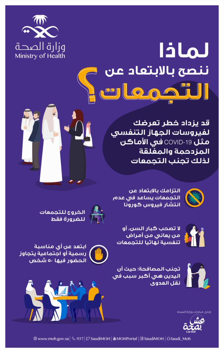 بعد تطبيق جميع ماذكر اعلاه ووجد شخص يعاني من اعراض تنفسيه سخونه او ضيق في التنفس الرجاء الاتصال على 937 واخذ التوجيهات اللازمه منهم فليس كل حاله تستدعي الذهاب الى الطوارئ ربما يتم توجيهك للعزل المنزلي