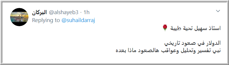 أستاذ سهيل تحية طيبة ، الدولار في صعود تاريخي