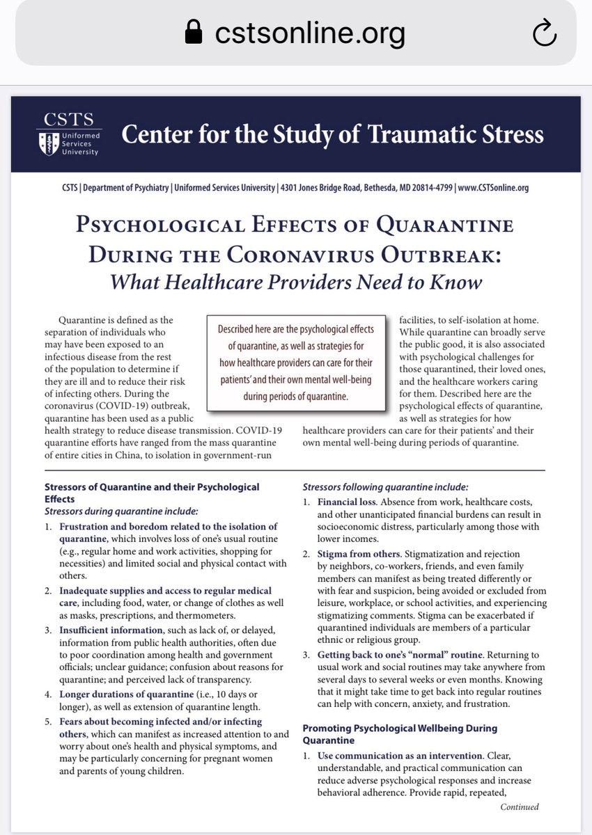 #الحجر_الصحي لا شك يمكن أنه يخدم الصالح العام على نطاق واسع ، ولكن يرتبط أيضًا بالتحديات النفسية لأولئك الذين يعانون من الحجر الصحي ، وأحبائهم ، والعاملين في مجال الرعاية الصحية الذين يقومون برعايتهم