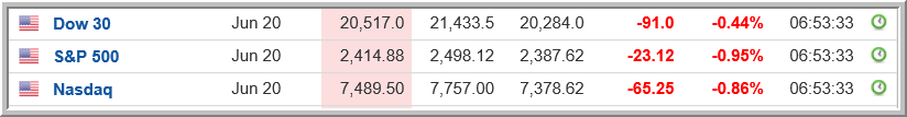 الان المؤشرات الامريكية تتخلى عن مكاسبها بالكامل التي بلغت قرابة 800 نقطة عند الافتتاح .. الان داوجونز على تراجع 120نقطة ، مؤشرى نازداك وستاندرد اند بورز على تراجع 1.8% و 1.5% على التوالي