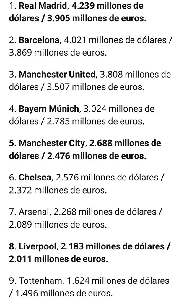 ABC | ريال مدريد يتصدر هذا الترتيب من عقد من الزمن وما يزال يستمر في قيادة هذا الترتيب ، ويتفوق فيه على كثير من الأندية خاصة المملوكة من قبل الدول كـ السيتي وباريس .