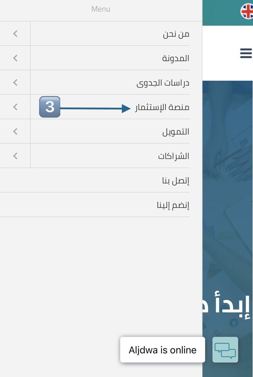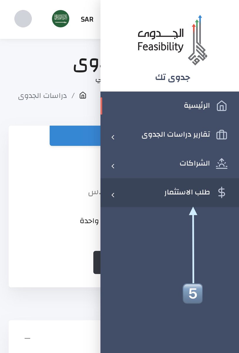 دليل المستخدم لطلب الاستثمار في منصة الجدوى بعد الدخول على رابط المنصة: