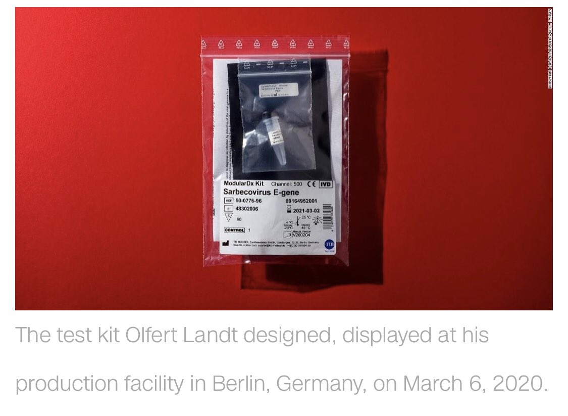 4/ عادة ما ينتظر علماء الفيروسات حتى يتم الانتهاء من الكشف عن تسلسل المواد الوراثية لفيروس جديد لبدء العمل في تصميم وانتاج اختبار لهذا الفيروس. لكن هذه المرة ، بدأ د.لاندت وشركته TIB Molbiol مبكرًا بالتعاون مع باحثين من مستشفى جامعي محلي.