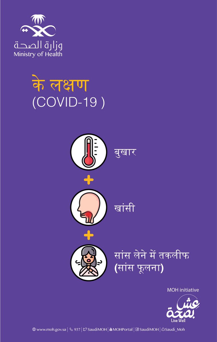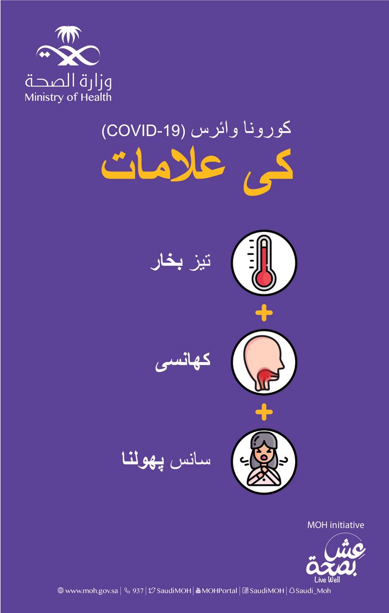 ساهم في توعية من حولك بجميع اللغات عن الطريقة الصحيحة في حال ظهور أعراض فيروس #كورونا الجديد وذلك بالبقاء في المنزل والاتصال على ٩٣٧