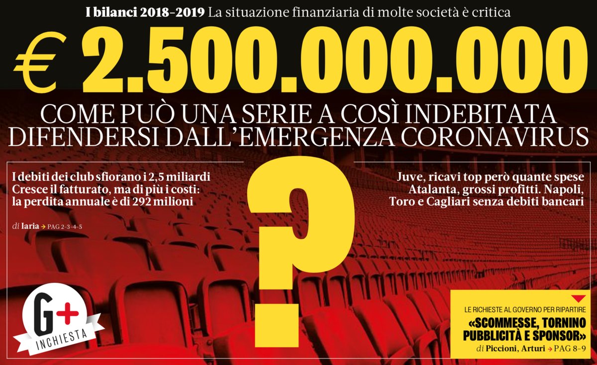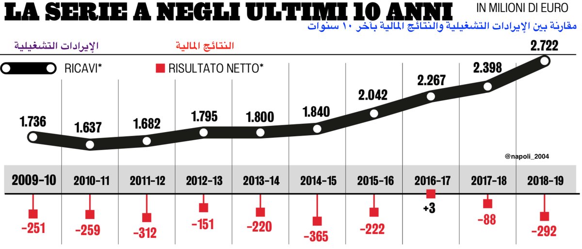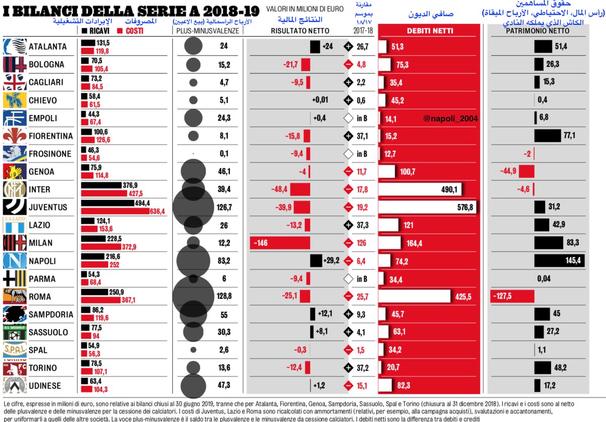 - أغلب الأندية ينتهي موسمها المالي بـ ٢٠١٩/٦/٣٠ ولكن بعض الأندية ينتهي مع نهاية ديسمبر (مثل أتالانتا والفيولا وتورينو و...) فالتقرير أضاف نتائجهم حتى ٢٠١٨/١٢/٣١