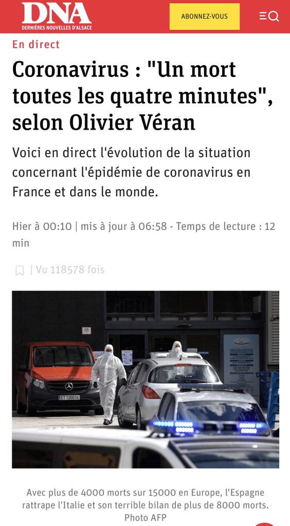أخبرني رئيس قسم التخدير و العناية المركزة ورئيس نقابة أطباء Grand Est، دكتور فرانسوا سيرفون أنه لم يرى مريض يوضع على التنفس الصناعي الكلي بسبب #كورونا ويخرج على قدمية حتى اليوم!