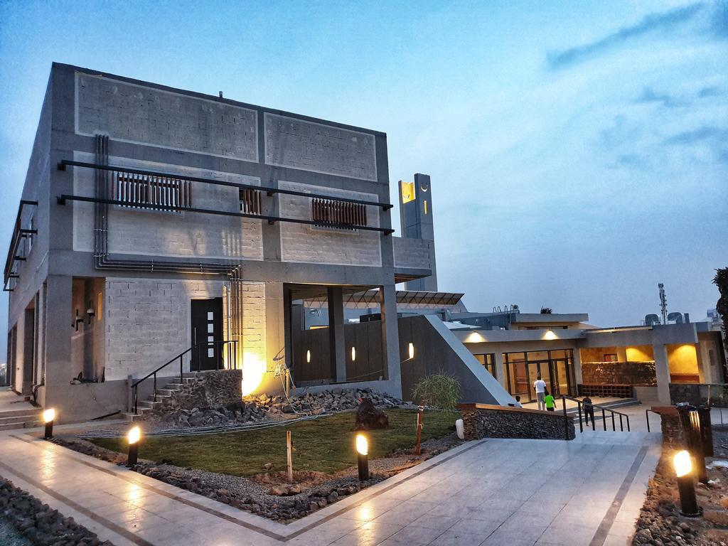 لاحظ كيف شكل الحجر من بيئة المشروع، والخرسانة ذات اللون المتجانس تشكيل هذا المشروع المميز الذي يرمز للاستمرارية والاستدامة باقل الكلفة واخف التفاصيل.