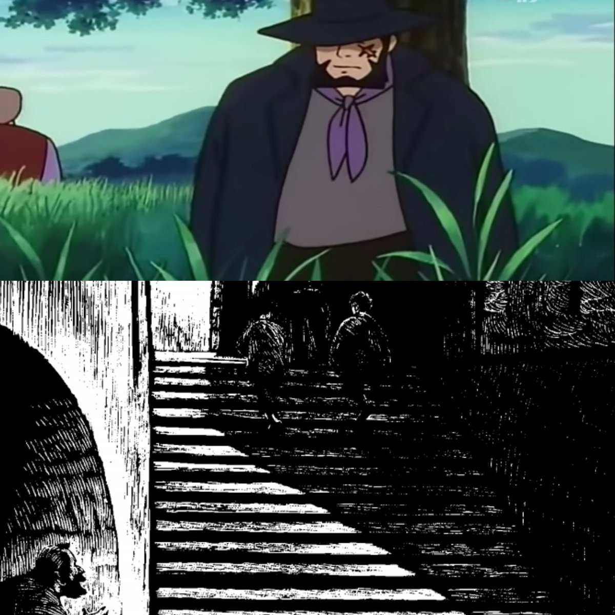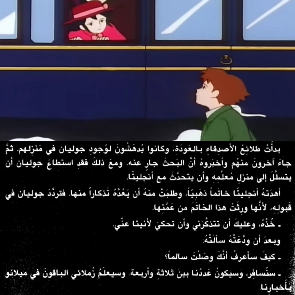 في الأنمي ينقل الرجل الغراب روميو حتى منتصف الطريق ثم يأمره بـ إكمال الطريق بنفسه 😡 طيب وش بـ يضرك لو وصلته لـ باقي الطريق خايف يخلص بانزين العربة مثلاً؟!=