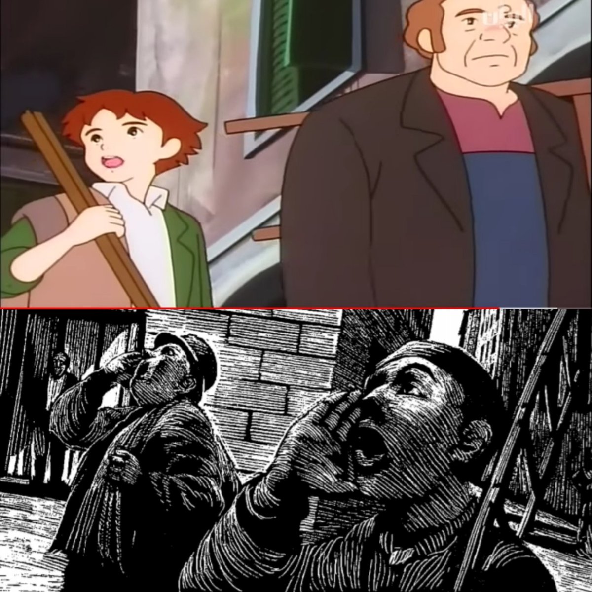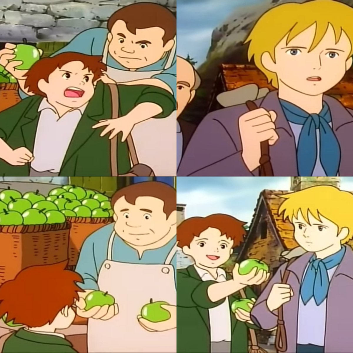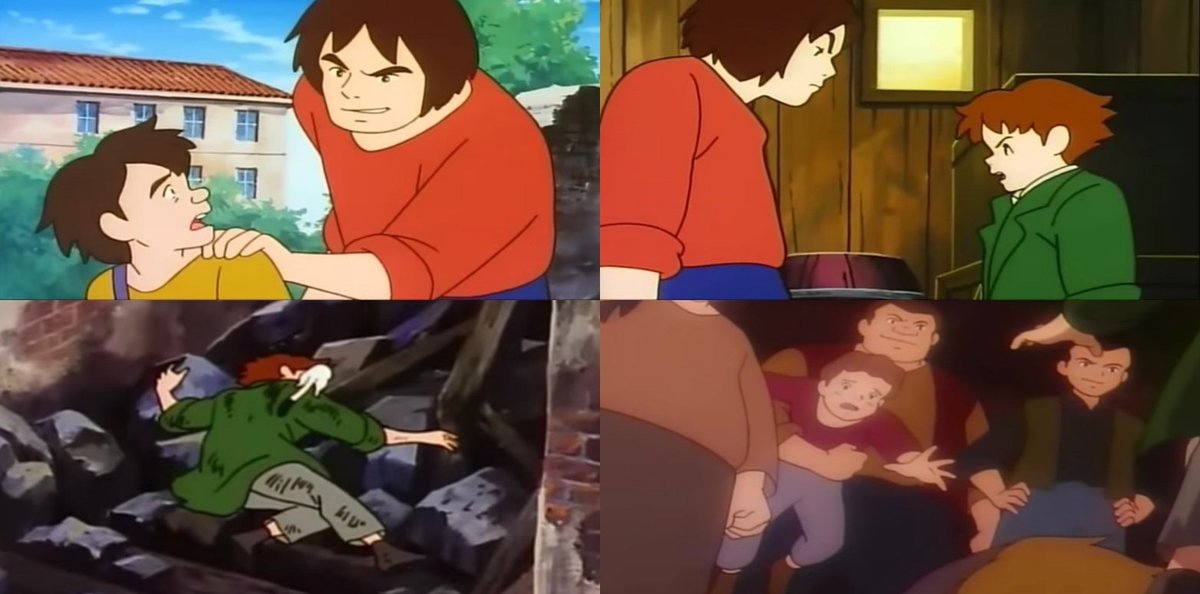 في الأنمي يقتصر العمل على عمل روميو وأبيه في الحقل مع عمله في دق أجراس الكنيسة صباحاً أما في الأنمي فـ العائلة كلها تعمل نتيجة الفقر المدقع والحاجة الماسة للمال=