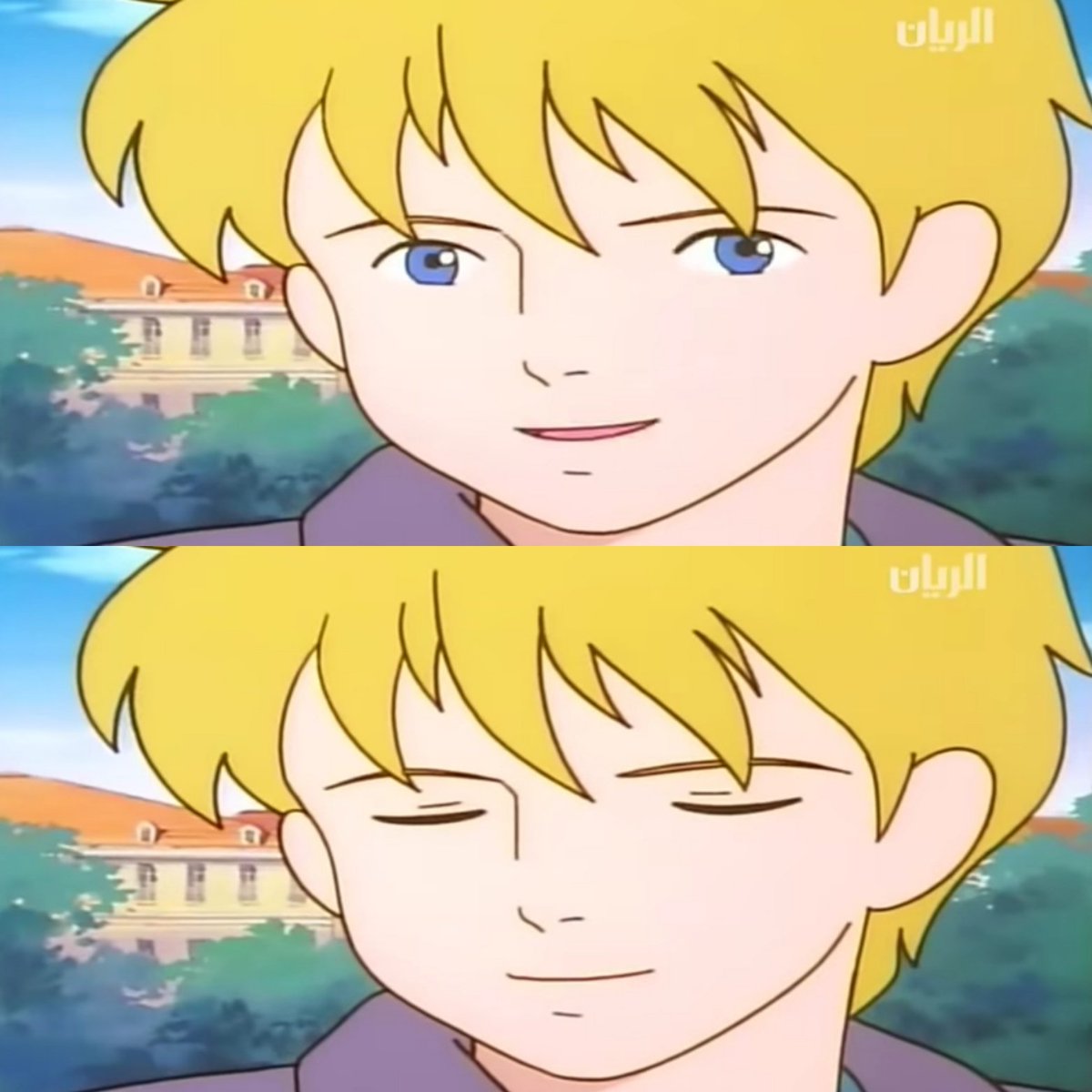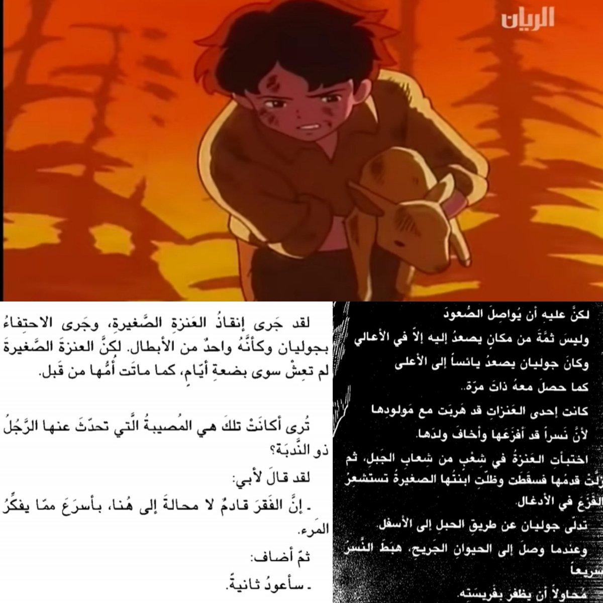 في الأنمي يصاب والد روميو إصابة بليغة في عينيه كادت تؤدي به إلى العمى وذلك خلال محاولته إنقاذ الماعز من الحقل المحترق=