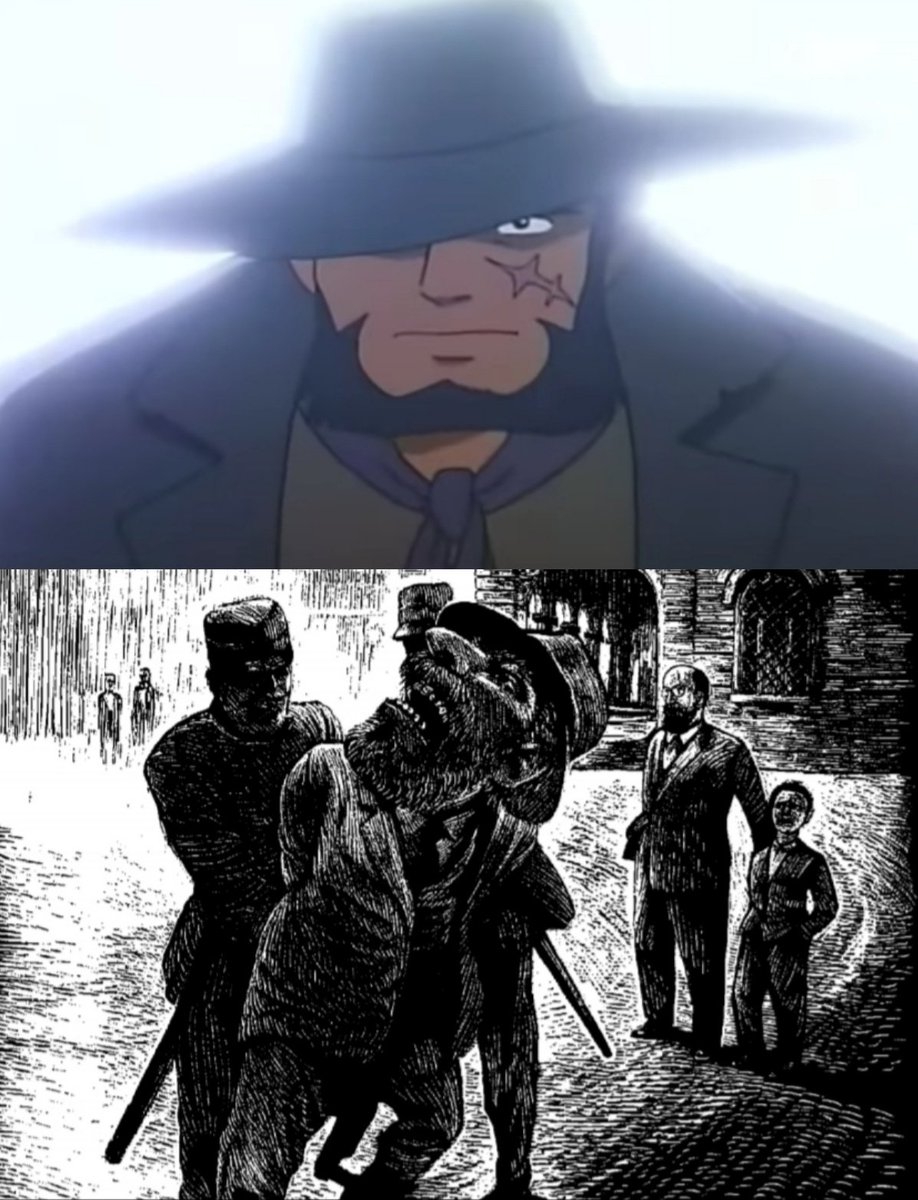 في الأنمي يذهب الرجل الغراب متخفياً لاستطلاع الأخبار بعد غرق القارب