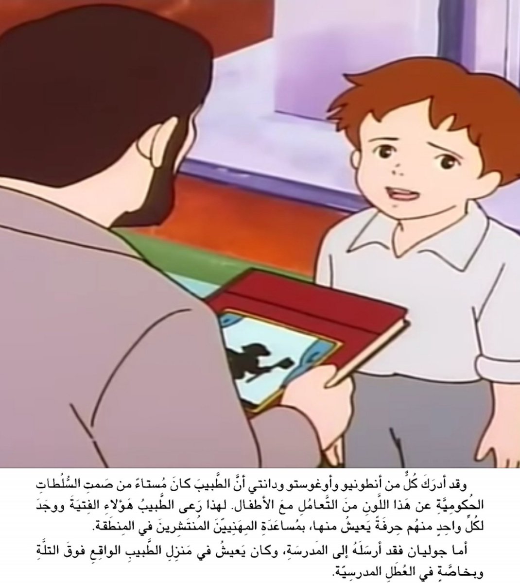 في الأنمي يتشاجر مع أنيتا التي حاولت ردعه عن الذهاب بدعوى أن أغلب الأولاد الذين ذهبوا إلى ميلانو لم يعودوا أما في الرواية يذهب دون أن يدوعها لكنها تدركه و يودعان بعضهما