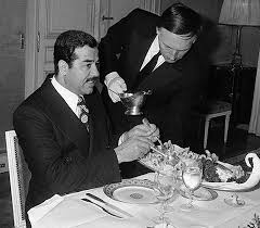 في(الإليزيه)وذكّره شيراك ب(السمك المسگوف)الذي أكله بزيارته الاخيرة لبغداد فماكان من صدام الا أن أمر بجلب(سمك الشبوط)بنفس اليوم من بغداد مع طباخي الرئاسةليقيم(بعدها بيوم)وليمةمن(السمك المسگوف)على شرف شيراك داخل (حديقةالإليزيه)لأول ولأخر مرة من قبل(مسؤول أجنبي)لينال بسببها