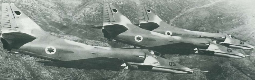 30/ثم تابع العقيد فريد: السكاى هوك مصممة أصلاً للعمل فوق حاملات الطائرات كقاذفة بحرية خفيفة ...لكن قدرة المناورة عندها تخليها مقاتلة كويسه برضه سرعه الطيارة 1.1 ماخ(الماخ هي وحده سرعه الصوت ) وهي مُحمله مقارنة بـ 1.5 ماخ للميج 21 عندنا