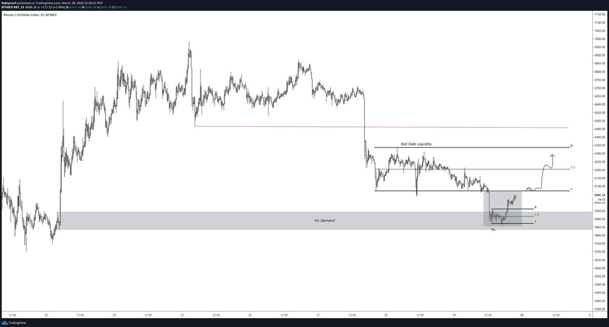 Price trading below EQ following a sweep of range high and rejected off formed H1 breaker.